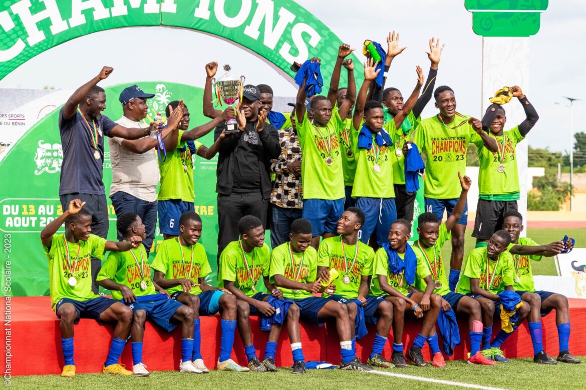 ” Félicitations au CEG Ste Rita pour sa double consécration. On n’est pas surpris. Vous avez été nos dignes représentants au championnat du monde au football et c’est normal que ce soir, confirmiez votre réputation. Bravo au CEG Azovè. La qualité de jeu que vous avez produit montre que vous aussi, vous pouvez être nos futurs champions. Merci encore au comité d’organisation pour ce magnifique travail.” a lancé le ministre.